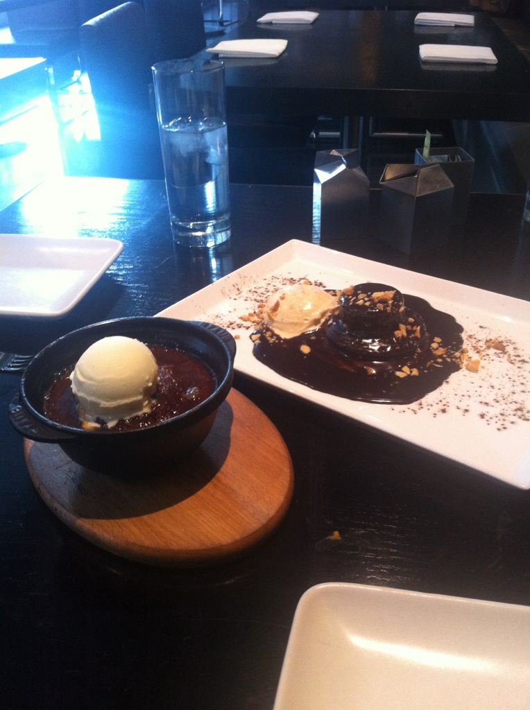 Dark Chocolate Souflee Cake with Peanut Butter Sauce + Salted Carmel Ice Cream